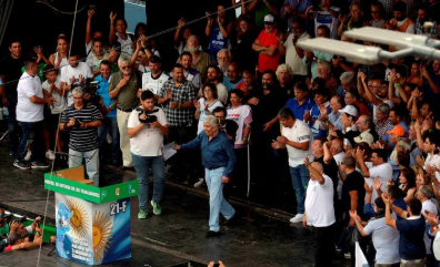 El titular de Camioneros destacó la amplia convocatoria de “distintos sectores políticos e ideológicos” lograda para el denominado 21-F, que se leía impreso sobre una bandera argentina en el palco de los oradores, y aseguró que las miles de personas presentes estuvieron por “un solo objetivo: decirle al Gobierno, al señor presidente, no siga llevando políticas que hambrean a la parte más sensible de nuestra sociedad”.