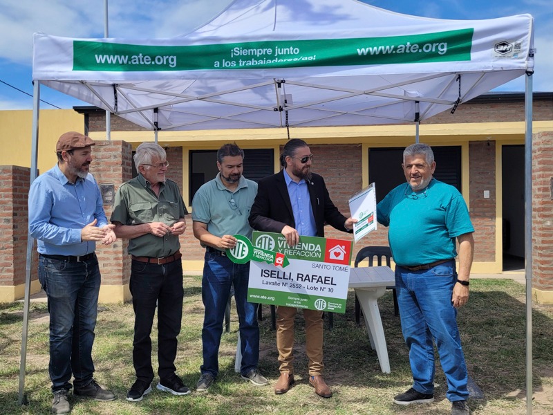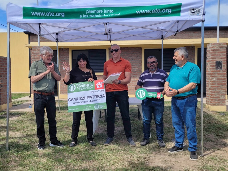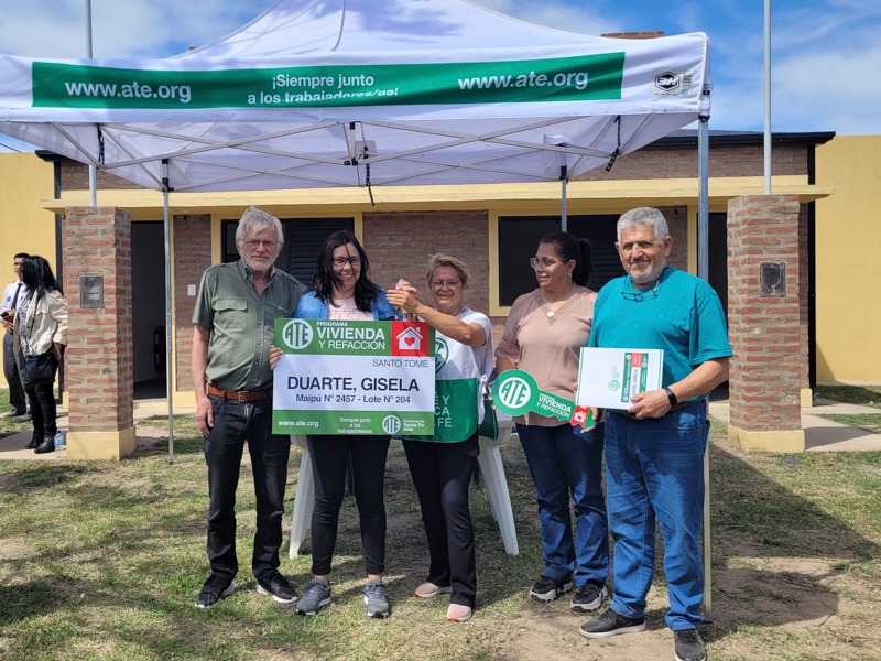 La Asociación Trabajadores del Estado -ATE- Santa Fe realizó este martes 25 una nueva entrega de llaves a 5 beneficiarios/as del Programa ATE Vivienda y Refacción en el barrio de ATE en Santo Tomé.