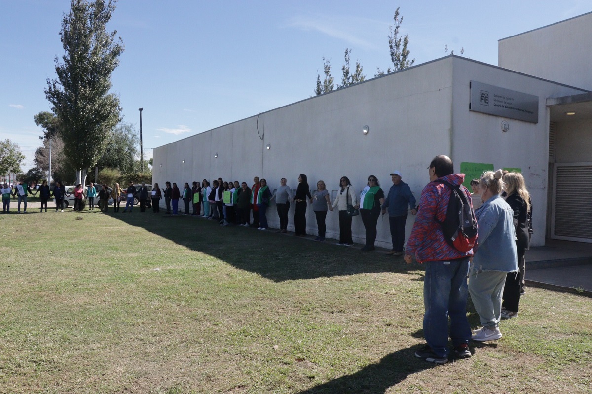 Este miércoles 22 de abril en horas del mediodía trabajadores, trabajadoras y referentes sindicales de ATE junto a personas de la comunidad llevaron adelante un abrazo simbólico al Centro de Salud, para dar visibilidad y reclamar por los continuos hechos de inseguridad ocurridos en la última semana.