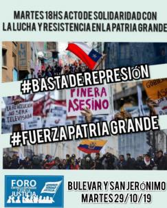El Foro Contra la Impunidad y por la Justicia de Santa Fe convoca a un acto de solidaridad con el pueblo chileno y los pueblos de la Patria Grande que están siendo violentados con políticas de ajuste, recesión y represión.