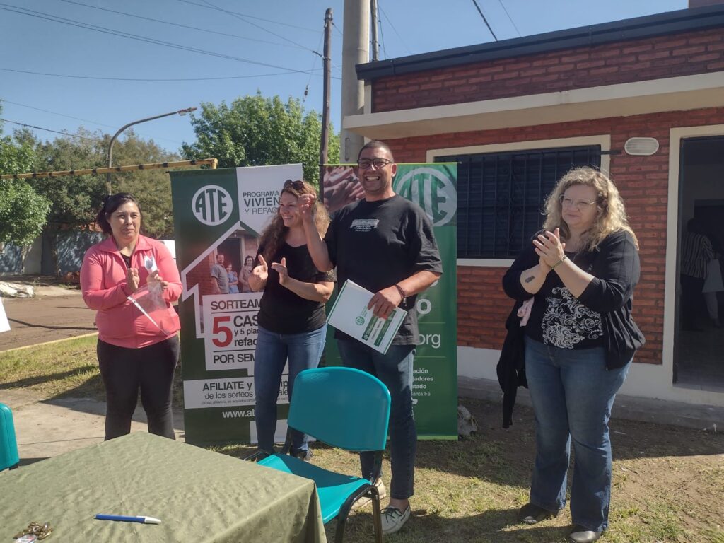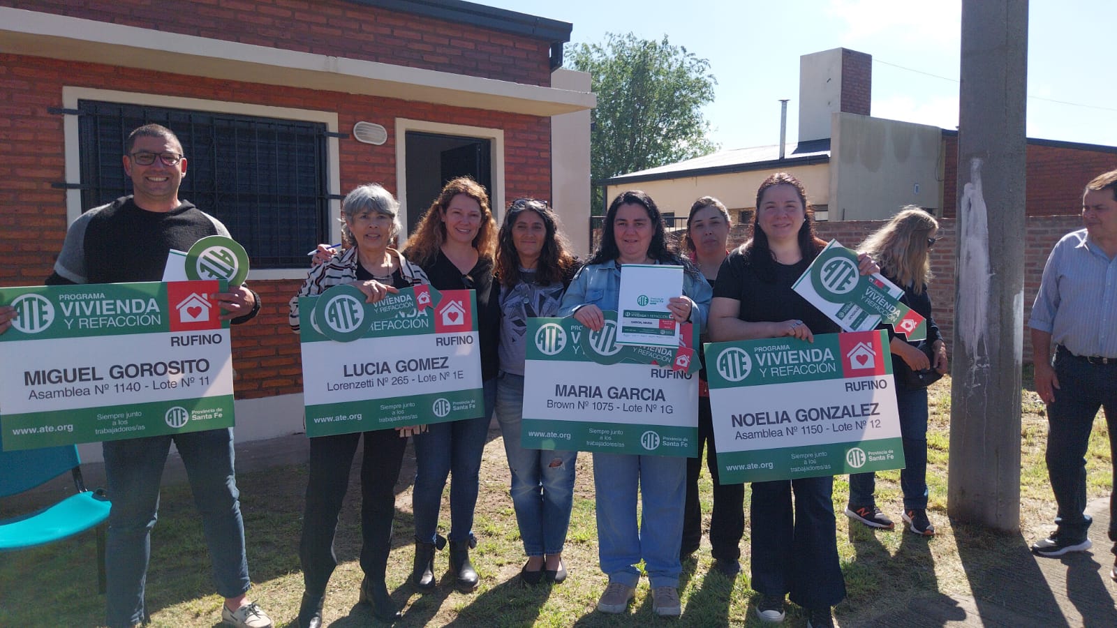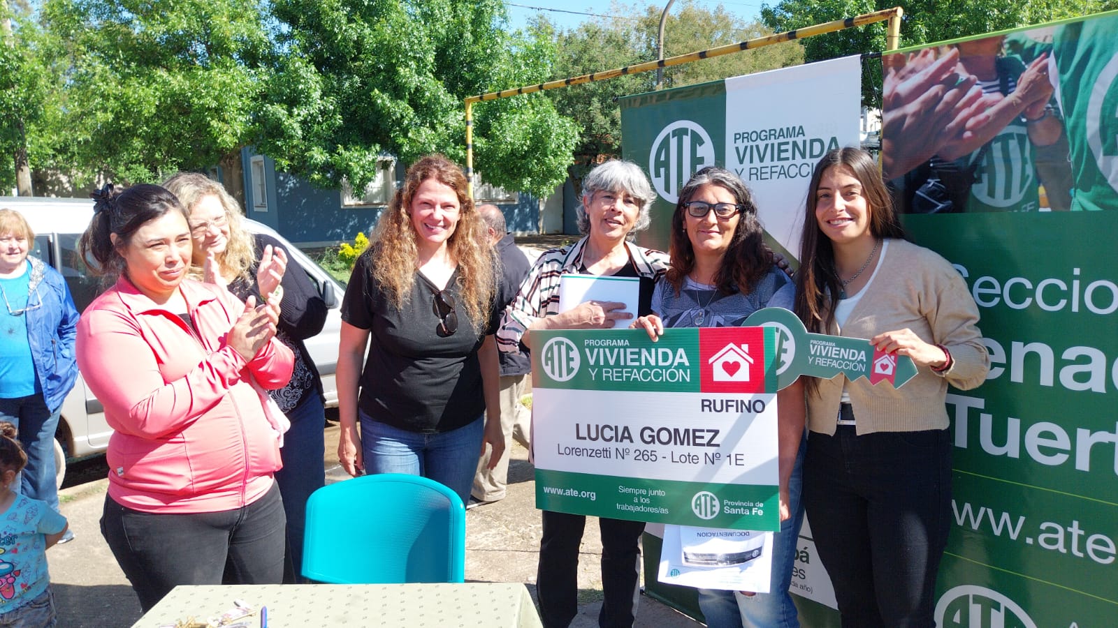 Este sábado 18 de septiembre, en un emotivo acto realizado en la localidad de Rufino, tres trabajadoras y un trabajador recibieron las llaves de su nuevo hogar. Las nuevas viviendas fueron adjudicadas a las trabajadoras de la salud Noelia González y Lucía González, afiliadas del SAMCo Rufino; y a María Bernarda García y Miguel Gorosito, asistentes escolares afiliados a las Escuelas Nº 171 y Nº 031, respectivamente. El encuentro contó con la participación de la secretaria adjunta de ATE, Ana Laura Gorosito, junto a integrantes del Consejo Directivo Provincial Melisa Nelli y Gabriela Aranda. Por la Seccional Venado Tuerto estuvieron presentes su secretaria general, Graciela Vázquez, y los miembros de la comisión administrativa Mario Cabrera, Gregorio Fantino y Carla Bustos. También acompañaron delegados y delegadas del sector Educación y Salud de Rufino, compañeras y compañeros de trabajo y familiares, quienes compartieron la emoción de un momento cargado de alegría y significado: la concreción de un sueño que transforma la vida de las familias.Este sábado 18 de septiembre, en un emotivo acto realizado en la localidad de Rufino, tres trabajadoras y un trabajador recibieron las llaves de su nuevo hogar. Las nuevas viviendas fueron adjudicadas a las trabajadoras de la salud Noelia González y Lucía González, afiliadas del SAMCo Rufino; y a María Bernarda García y Miguel Gorosito, asistentes escolares afiliados a las Escuelas Nº 171 y Nº 031, respectivamente. El encuentro contó con la participación de la secretaria adjunta de ATE, Ana Laura Gorosito, junto a integrantes del Consejo Directivo Provincial Melisa Nelli y Gabriela Aranda. Por la Seccional Venado Tuerto estuvieron presentes su secretaria general, Graciela Vázquez, y los miembros de la comisión administrativa Mario Cabrera, Gregorio Fantino y Carla Bustos. También acompañaron delegados y delegadas del sector Educación y Salud de Rufino, compañeras y compañeros de trabajo y familiares, quienes compartieron la emoción de un momento cargado de alegría y significado: la concreción de un sueño que transforma la vida de las familias.Este sábado 18 de septiembre, en un emotivo acto realizado en la localidad de Rufino, tres trabajadoras y un trabajador recibieron las llaves de su nuevo hogar. Las nuevas viviendas fueron adjudicadas a las trabajadoras de la salud Noelia González y Lucía González, afiliadas del SAMCo Rufino; y a María Bernarda García y Miguel Gorosito, asistentes escolares afiliados a las Escuelas Nº 171 y Nº 031, respectivamente. El encuentro contó con la participación de la secretaria adjunta de ATE, Ana Laura Gorosito, junto a integrantes del Consejo Directivo Provincial Melisa Nelli y Gabriela Aranda. Por la Seccional Venado Tuerto estuvieron presentes su secretaria general, Graciela Vázquez, y los miembros de la comisión administrativa Mario Cabrera, Gregorio Fantino y Carla Bustos. También acompañaron delegados y delegadas del sector Educación y Salud de Rufino, compañeras y compañeros de trabajo y familiares, quienes compartieron la emoción de un momento cargado de alegría y significado: la concreción de un sueño que transforma la vida de las familias.