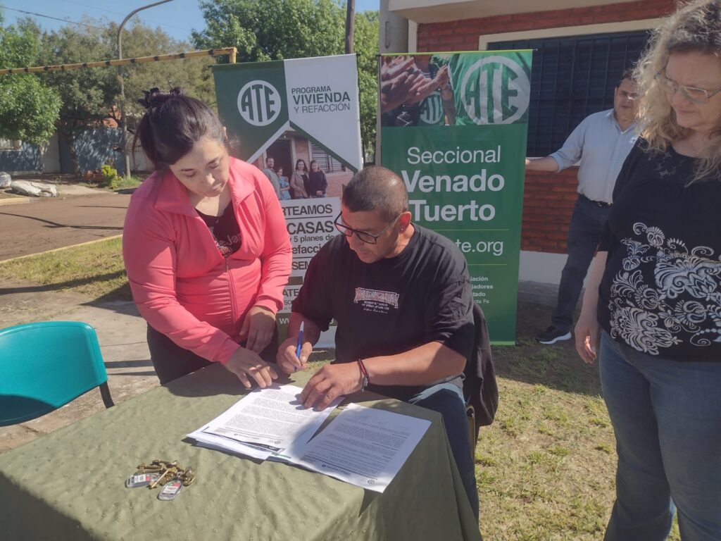 Las nuevas viviendas fueron adjudicadas a las trabajadoras de la salud Noelia González y Lucía González, afiliadas del SAMCo Rufino; y a María Bernarda García y Miguel Gorosito, asistentes escolares afiliados a las Escuelas Nº 171 y Nº 031, respectivamente.