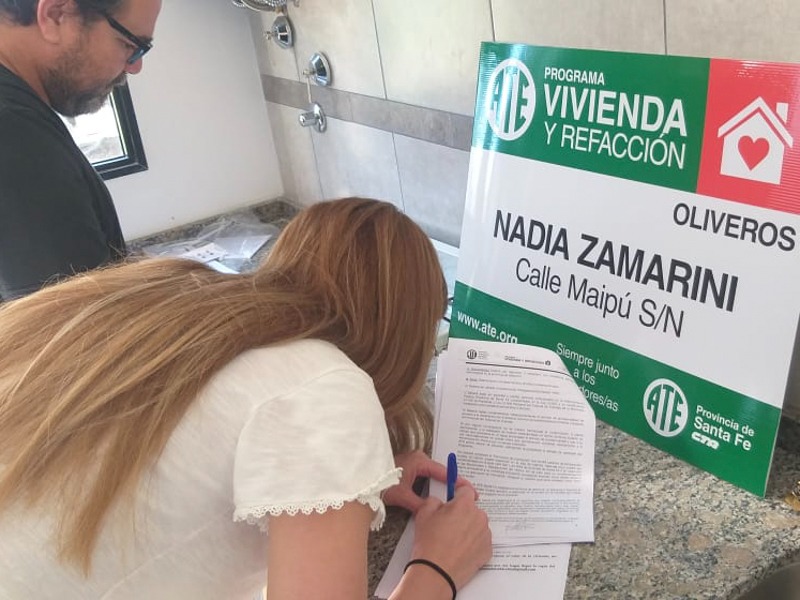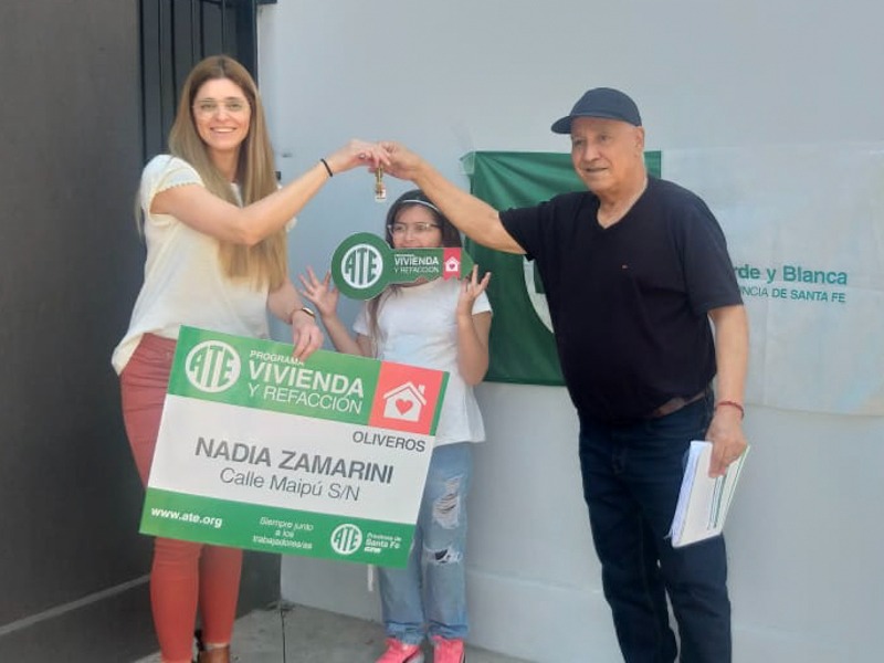 En el acto de entrega de las llaves de la propiedad, asistieron familiares y compañeros/as de trabajo de Nadia; el delegado y candidato por la Lista Verde y Blanca por la Seccional Rosario, Omar Carello; el integrante del Consejo Directivo Provincial de ATE, Rafael Benitez; el referente Hernán Catay y la delegada Liliana Figuera.