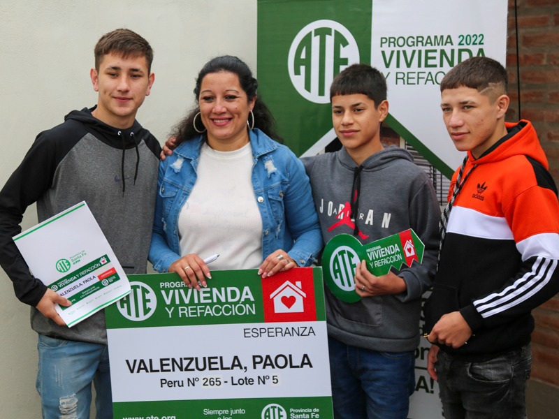 Paola Valenzuela trabaja en el SAMCo de Esperanza, del Ministerio de Salud. Recibió la llave de su casa acompañada por su familia y amigos.