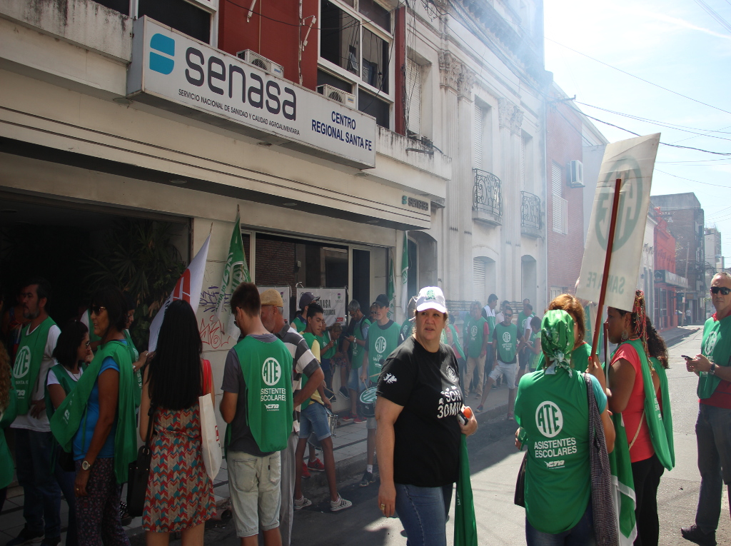 En el marco del Paro Nacional de 96 horas, convocado por ATE SENASA, en la Provincia de Santa Fe se realizó una concentración frente a la sede de la Regional SENASA. Posteriormente, se llevo a cabo una asamblea donde se definió continuar con el estado de alerta y movilización permanente y enviar una Carta Documento al Presidente del organismo a quien le solicitamos: