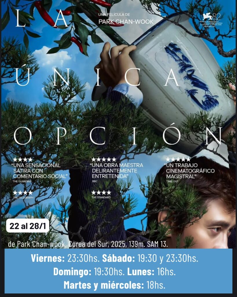Funciones comerciales: Domingo: 17:50hs Lunes: 20:20hs – Martes y miércoles: 22:15hs.