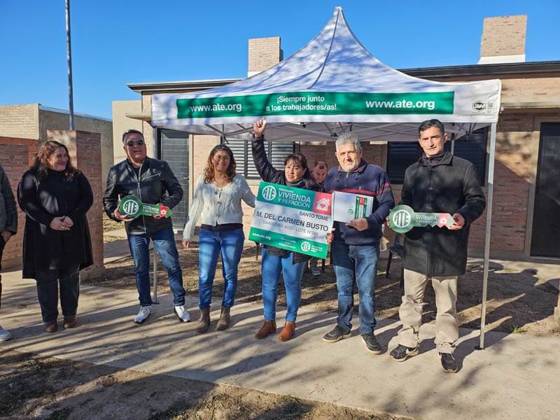 Integrantes del Consejo Directivo Provincial de la Asociación Trabajadores del Estado -ATE- Santa Fe hicieron entrega este jueves 25 de julio, de las llaves de sus hogares a 8 trabajadores/as afiliados/as beneficiarios/as del Programa ATE Vivienda y Refacción.