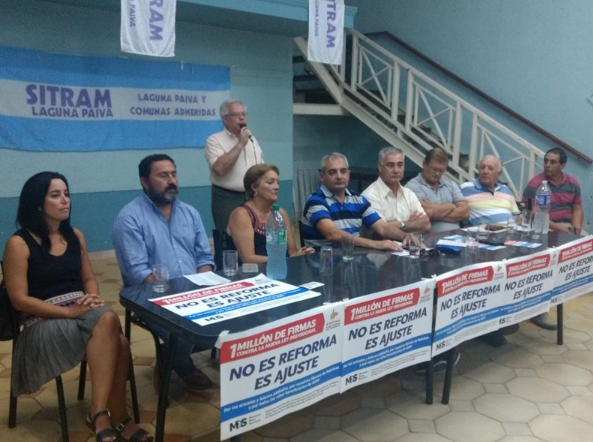 Este jueves 15 de febrero representantes del MOS – Movimiento Obrero Santafesino – realizaron una conferencia en la localidad de Laguna Paiva en SITRAM. Asimismo, también se realizó una presentación de la campaña 1Millón de Firmas en San Lorenzo en el local de AMSAFE.