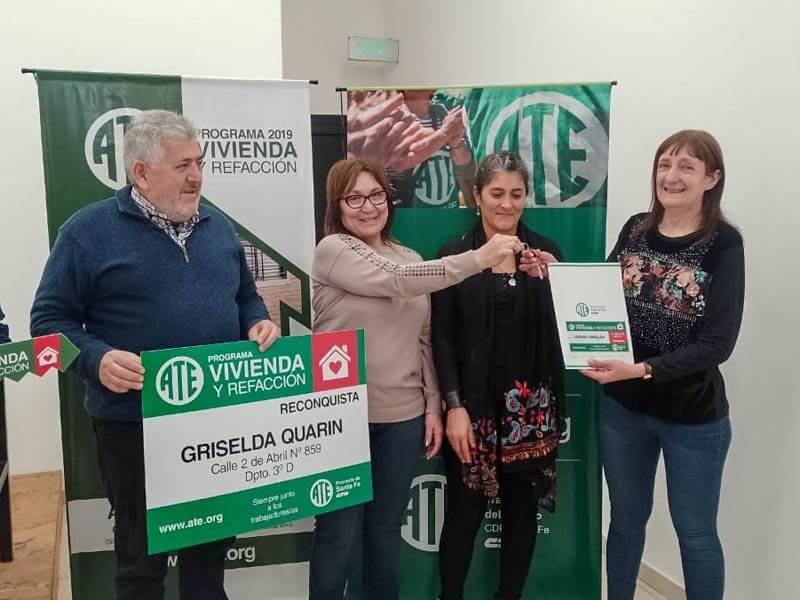 En un emocionante acto realizado esta mañana, 6 beneficiarios/as del Programa ATE Vivienda y Refacción obtuvieron las llaves de sus nuevas viviendas en el edificio de ATE, ubicado en Calle 2 de Abril 859, en Reconquista.