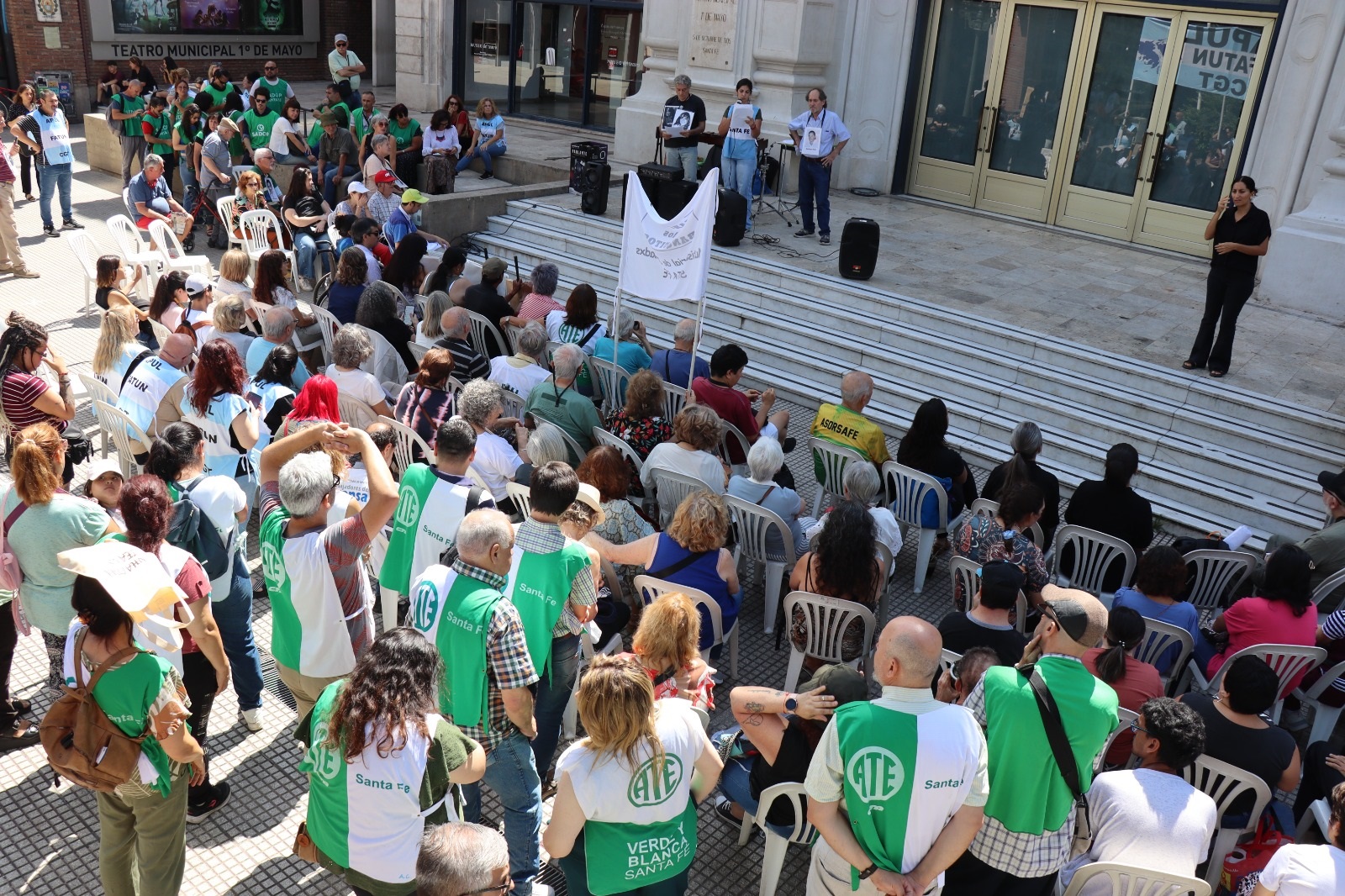 En la mañana del miércoles 10 de diciembre el Foro contra la Impunidad y por la Justicia de Santa Fe y el colectivo de personas con Discapacidad realizaron un acto conjunto en San Martín y Juan de Garay, frente al Teatro Municipal, para visibilizar una causa social, una demanda necesaria y urgente por más presupuesto, atención y respuestas.