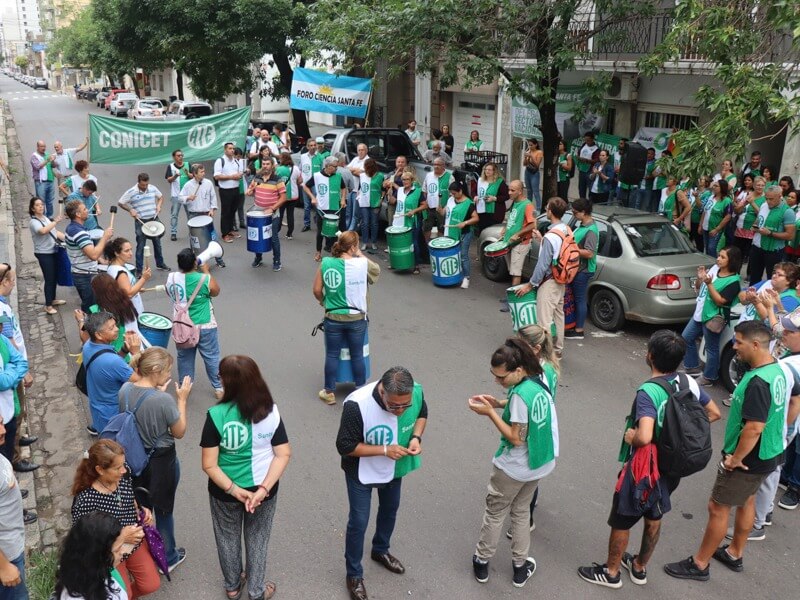 Participaron trabajadores/as de los distintos organismos nacionales en Santa Fe: SENASA, CONICET, ANSES, PAMI, entre otros. La medida también es para repudiar la decisión del gobierno nacional de cerrar el INADI, anunciado el día jueves por el vocero presidencial.