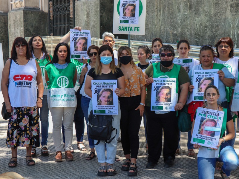 Por ello, integrantes del Consejo Directivo Provincial de la Asociación Trabajadores del Estado -ATE- Santa Fe, delegados/as, referentes del área de Género y Diversidad, se unen a familiares, amigos/as de Cecilia, a militantes de espacios contra la violencia de género, en el reclamo de justicia y prisión perpetua para su femicida, con prisión preventiva en la actualidad.