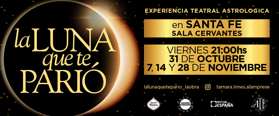 “La luna que te parió”, un viaje poético y teatral sobre las 12 lunas del zodíaco, vuelve a escena para presentar un nuevo ciclo de funciones en la sala Cervantes de ATE Casa España. La obra escrita y dirigida por Tamara Limes Alamprese, en la que el espectador transita una experiencia espiritual, ofrecerá 4 presentaciones en el espacio cultural ubicado en calle Rivadavia 2871 de la ciudad de Santa Fe. El re estreno se concretará el viernes 31 de octubre, a las 21 horas. Luego, permanecerá en cartelera el 7, 14 y 28 de noviembre.