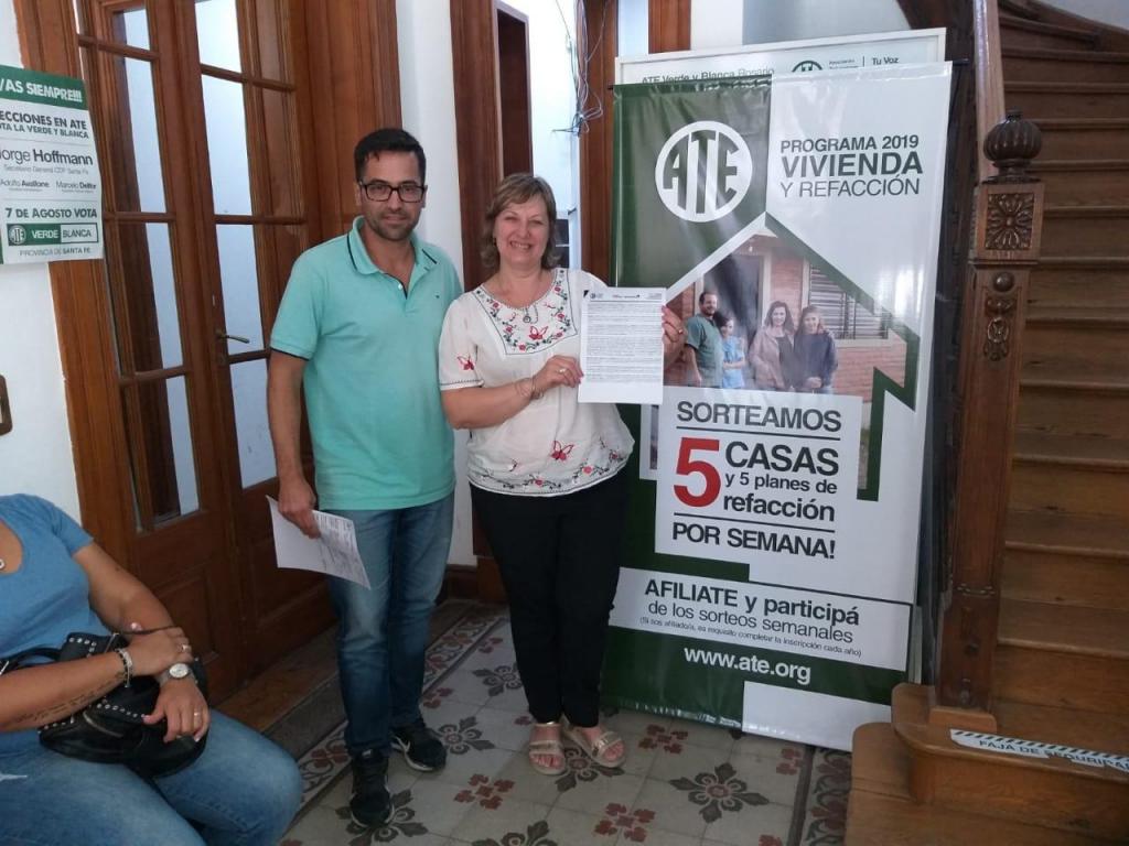 En la sede gremial de la Asociación Trabajadores del Estado -ATE- Santa Fe, este viernes 3, Yanina López, trabajadora de la Dirección de Catastro – S.C.I.T Santa Fe, firmó la Línea en la que fue beneficiaria en octubre pasado en el marco del Programa ATE Vivienda y Refacción.