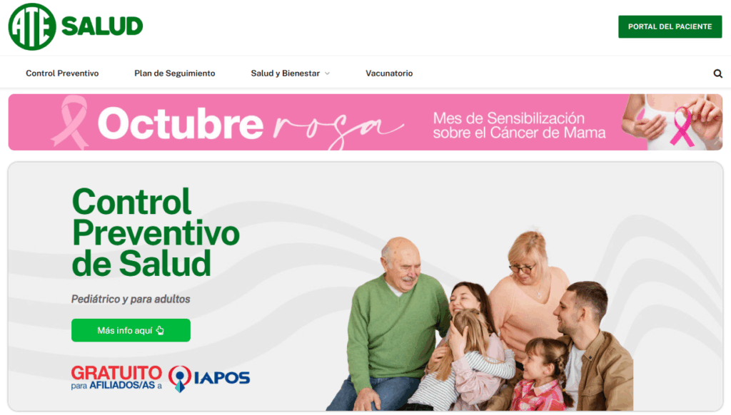 En el marco de las acciones de prevención y promoción de la salud, el Centro de Salud de ATE también se suma al espíritu de Octubre Rosa. Una de sus principales iniciativas es el Control Preventivo, una jornada gratuita y abierta a los/as afiliados/as al IAPOS, donde se realizan controles médicos sin necesidad de órdenes ni bonos, de manera ágil y accesible.