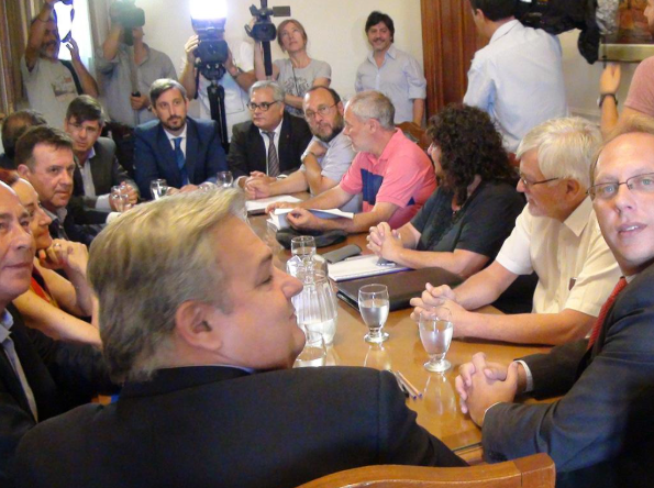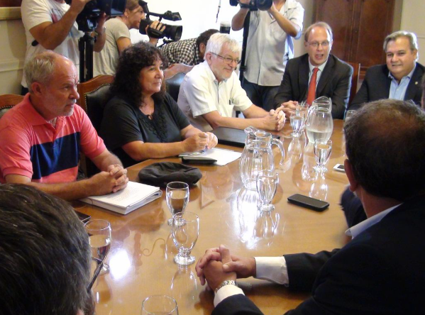En ese marco, los ministros de Economía, Gonzalo Saglione, y de Gobierno y Reforma del Estado, Pablo Farías, encabezaron la reunión y dieron a conocer una primera oferta salarial para este 2018. La misma consistió en un incremento del 16%, con el ofrecimiento de incluir nuevamente la cláusula de actualización automática de salarios.