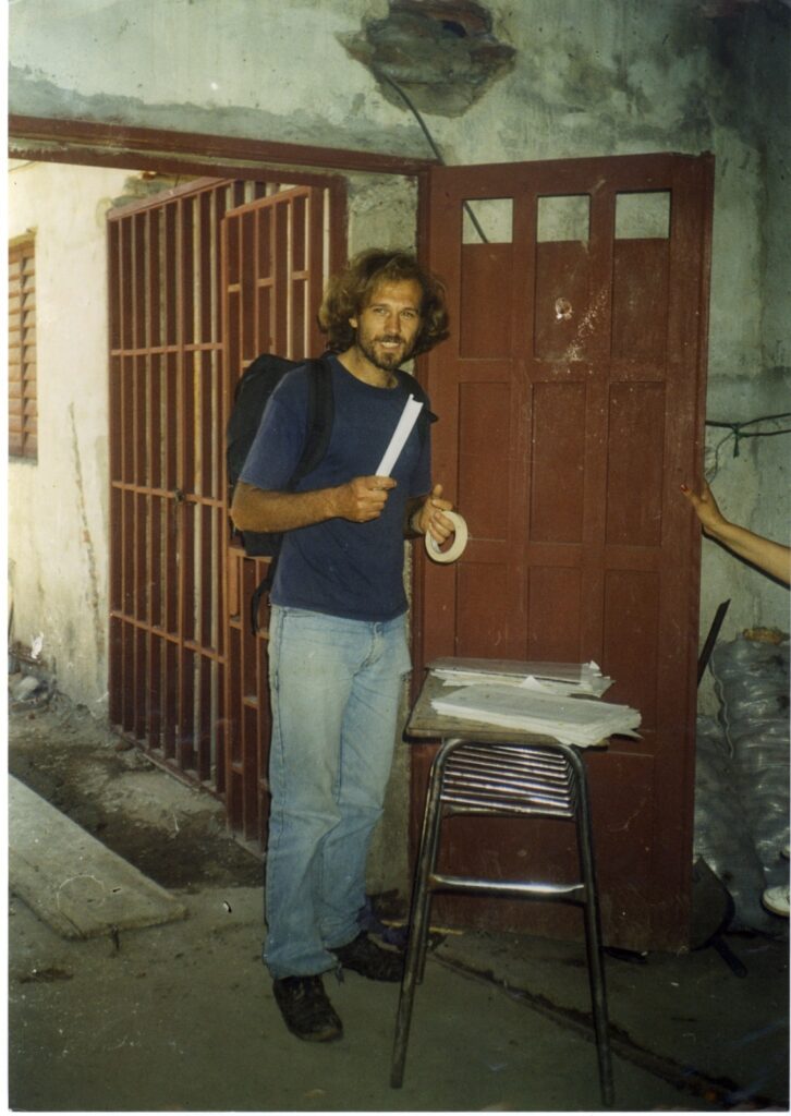 Trabajó durante años con niñas, niños y jóvenes de las barriadas populares. Impulsó talleres, campamentos, huertas comunitarias, proyectos productivos. Se formó en experiencias latinoamericanas de lucha y organización popular. Militó en ATE y en la CTA, acompañando conflictos, huelgas y protestas, convencido de que la dignidad también se defiende colectivamente.