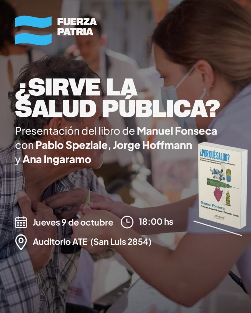 Presentación del libro ¿Por qué salud? de Manuel Fonseca. En el encuentro se contará con la presencia del autor junto a Pablo Speziale, Jorge Hoffmann y Ana Ingaramo.