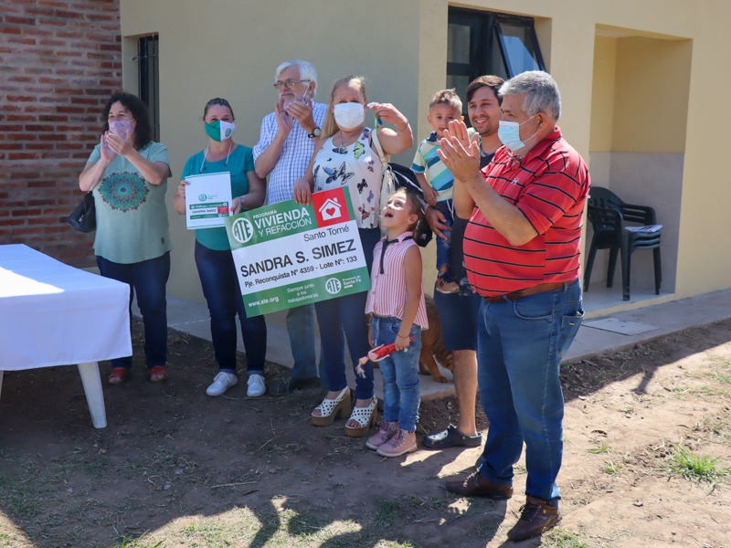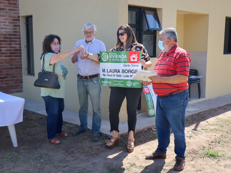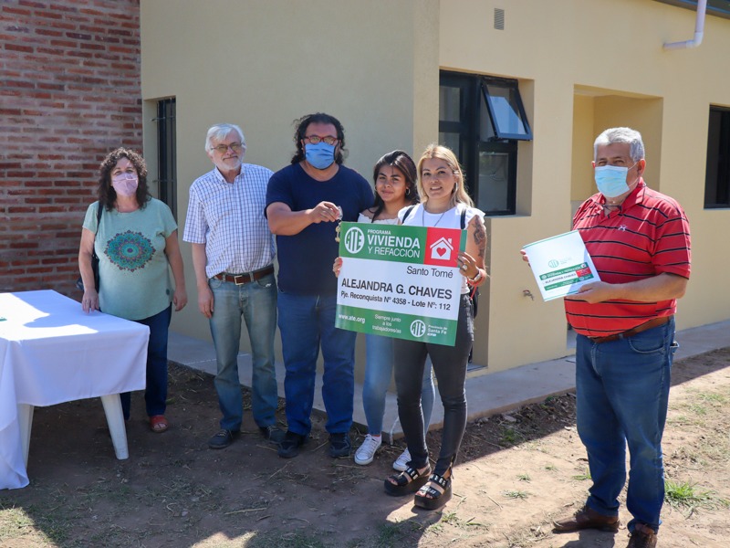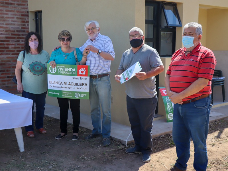Este miércoles 1 de diciembre, miembros del Consejo Directivo Provincial de la Asociación Trabajadores del Estado -ATE- Santa Fe, en un sencillo acto, compartieron la alegría de 6 trabajadores/as afiliados/as que recibieron las llaves de su casa, al haber sido beneficiados/as en distintos sorteos del Programa Vivienda y Refacción.