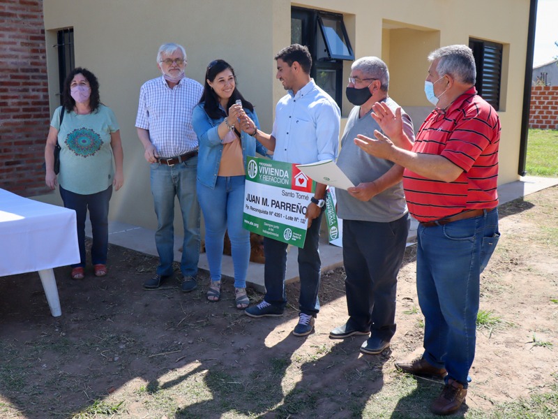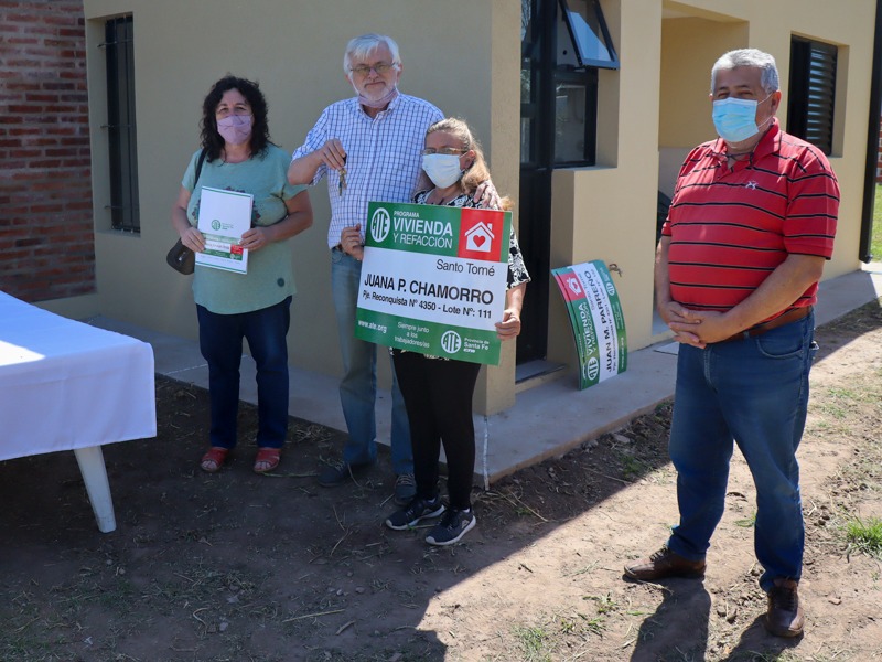 En tanto, al día siguiente en la sede gremial de ATE, la afiliada Patricia Mainer, enfermera del Centro de Salud “Demetrio Gómez” de Alto Verde, recibió las llaves de su vivienda de mano de los integrantes del Consejo Directivo Provincial Darío Galarza y Alejandro Esquivel, familiares y empleados/as del sindicato.