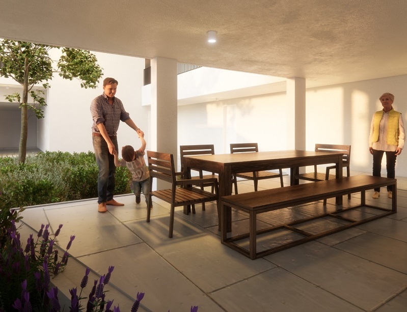 - Zona recreativa con espacios semi-cubiertos de encuentro, juego de niños/as y esparcimiento
