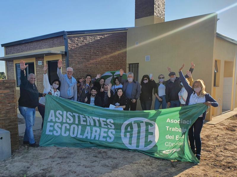 Miembros del CDP de la Asociación Trabajadores del Estado -ATE- Santa Fe, referentes y delegadas de Asistentes Escolares compartieron el feliz momento que vivió Melisa Nelli, beneficiaria del Programa Vivienda y Refacción.