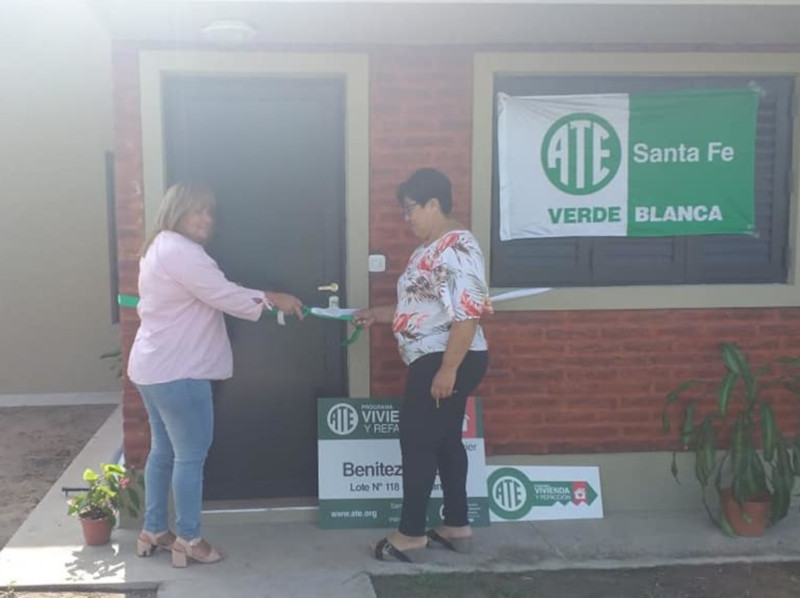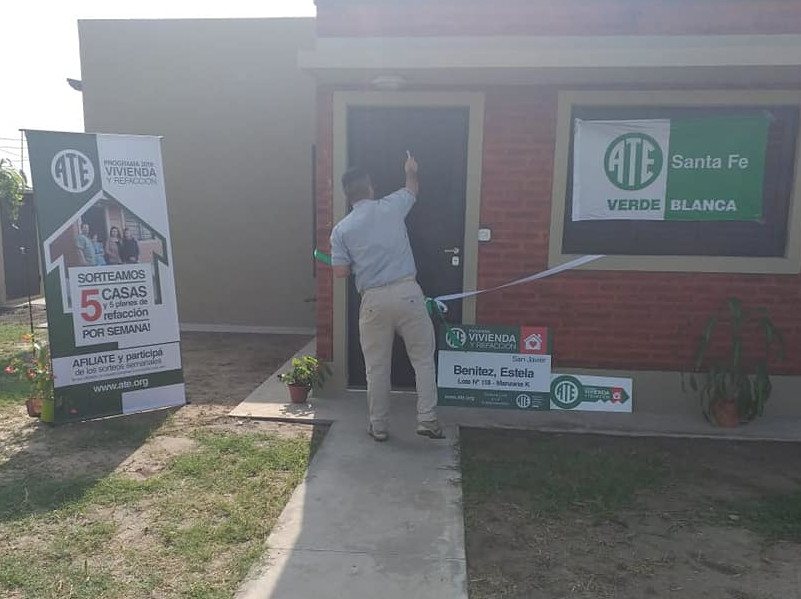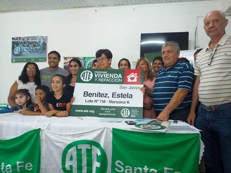 Referentes del CDP de la Asociación Trabajadores del Estado -ATE- Santa Fe y de la Seccional San Javier hicieron entrega este miércoles de las llaves de su casa a una de las beneficiarias de esa ciudad del Programa ATE Vivienda y Refacción.