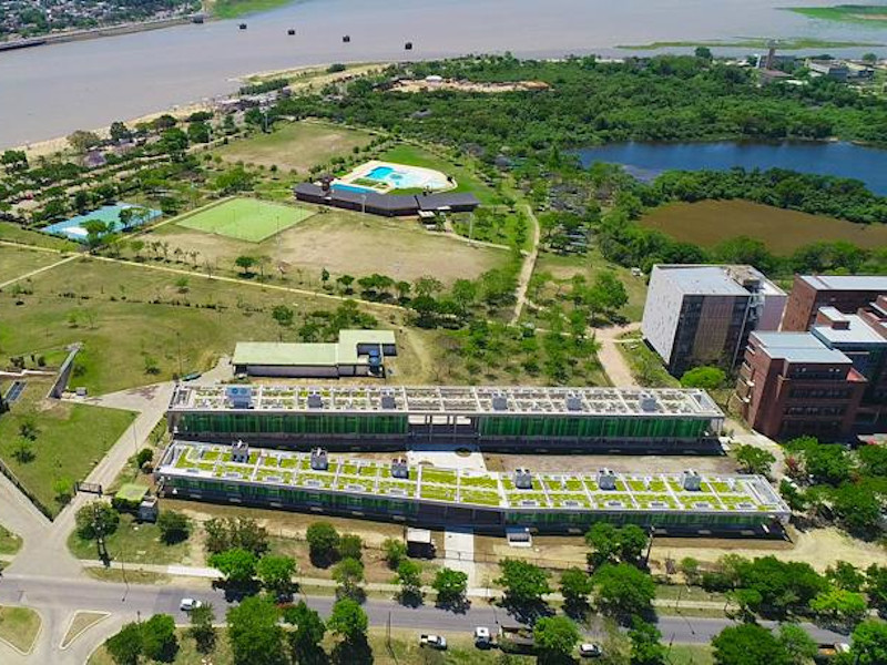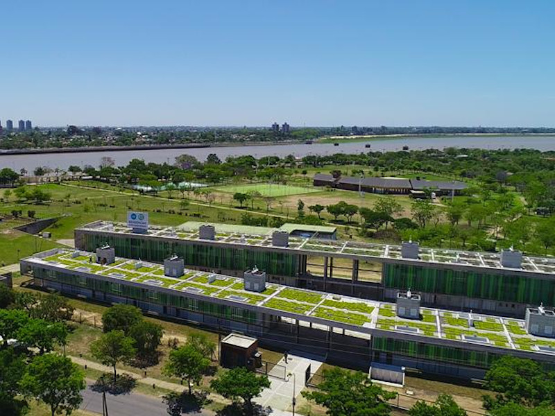 - El complejo combina buenas orientaciones, espacios intermedios, terrazas verdes, con un sistema de doble fachada conformada por parasoles de colores que le otorgan a través de sus sombras y luces una imagen dinámica y cambiante.