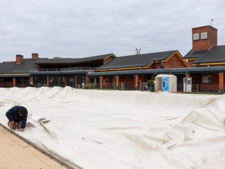 Comienzan las tareas para desarmar y de secado de la carpa.