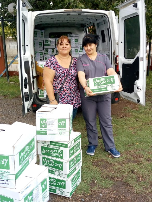 Así, cada caja, adecuada a cada etapa escolar, está compuesta por útiles, equipo de gimnasia (buzo y pantalón), remera y zapatillas.